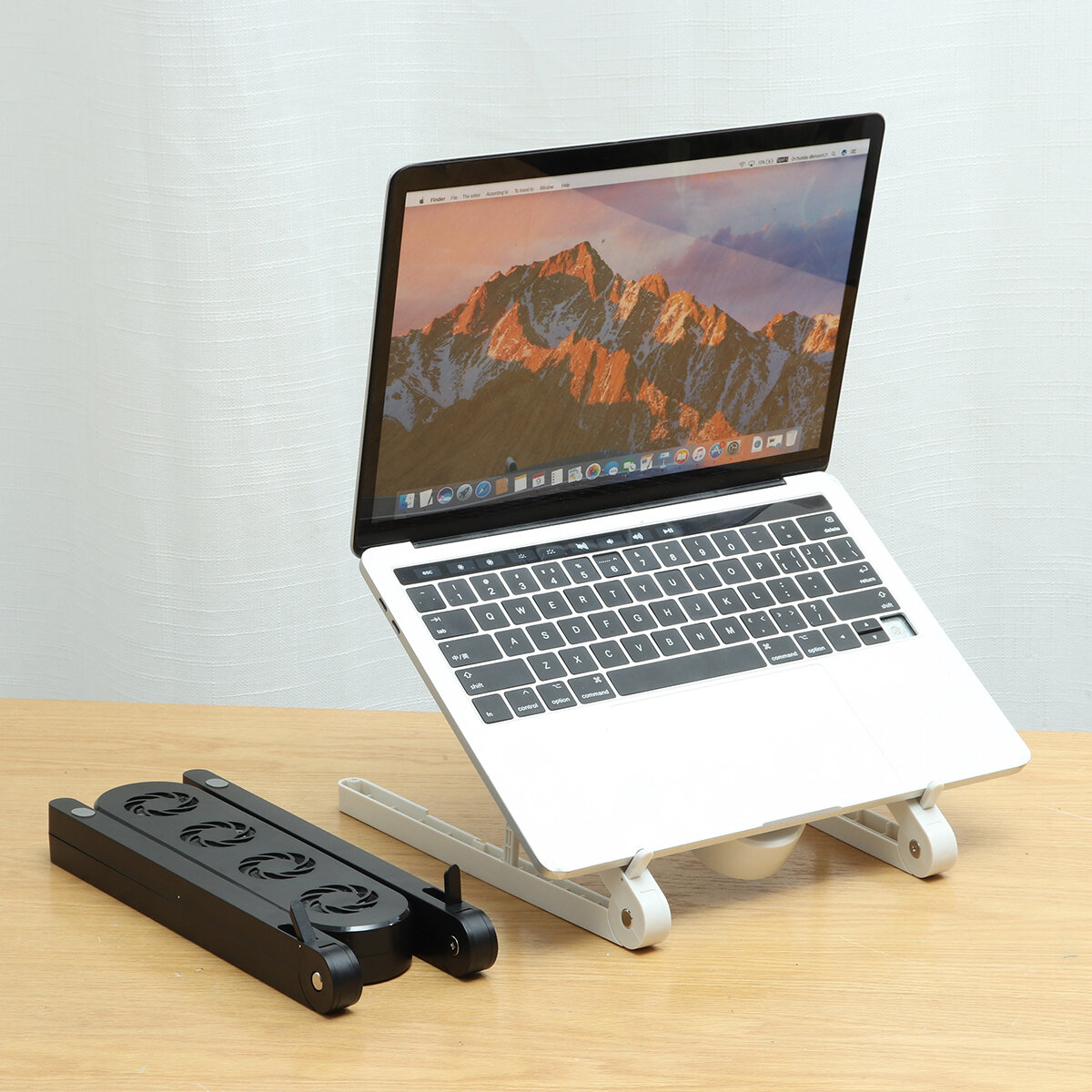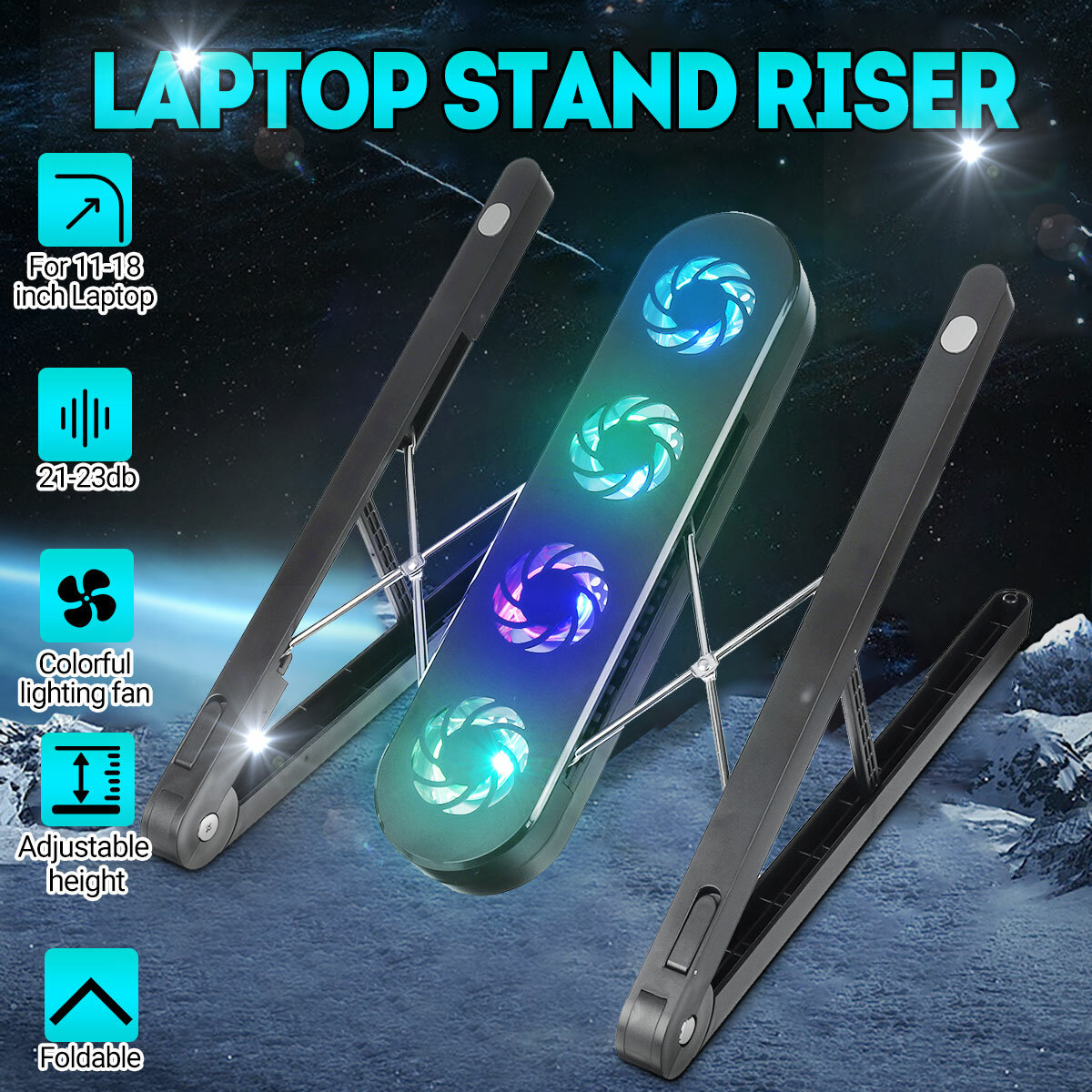 SPECIFICATION: ✔ Foldable to store, portable, space-saving.✔ 7 levels of height adjustment to meet various needs.✔ Strong compatibility, suitable for the use of 11-18 inch laptop computers.✔ Adjustable Stand to provide different sitting postures, in line with ergonomic design.✔ More helpful for heat dissipation with four colorful lighting fans, improve the game experience. PACKAGE INCLUDED: