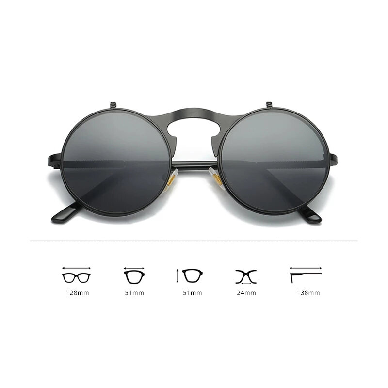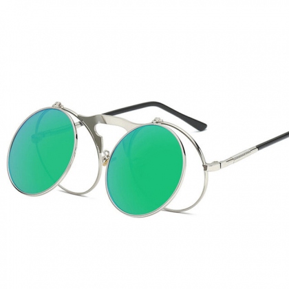 UV400 Vintage Steampunk Flip Up Men Sunglasses Women Retro Round Metal Frame Sun Glasses Hinge Design Curved Glasses Legs COD