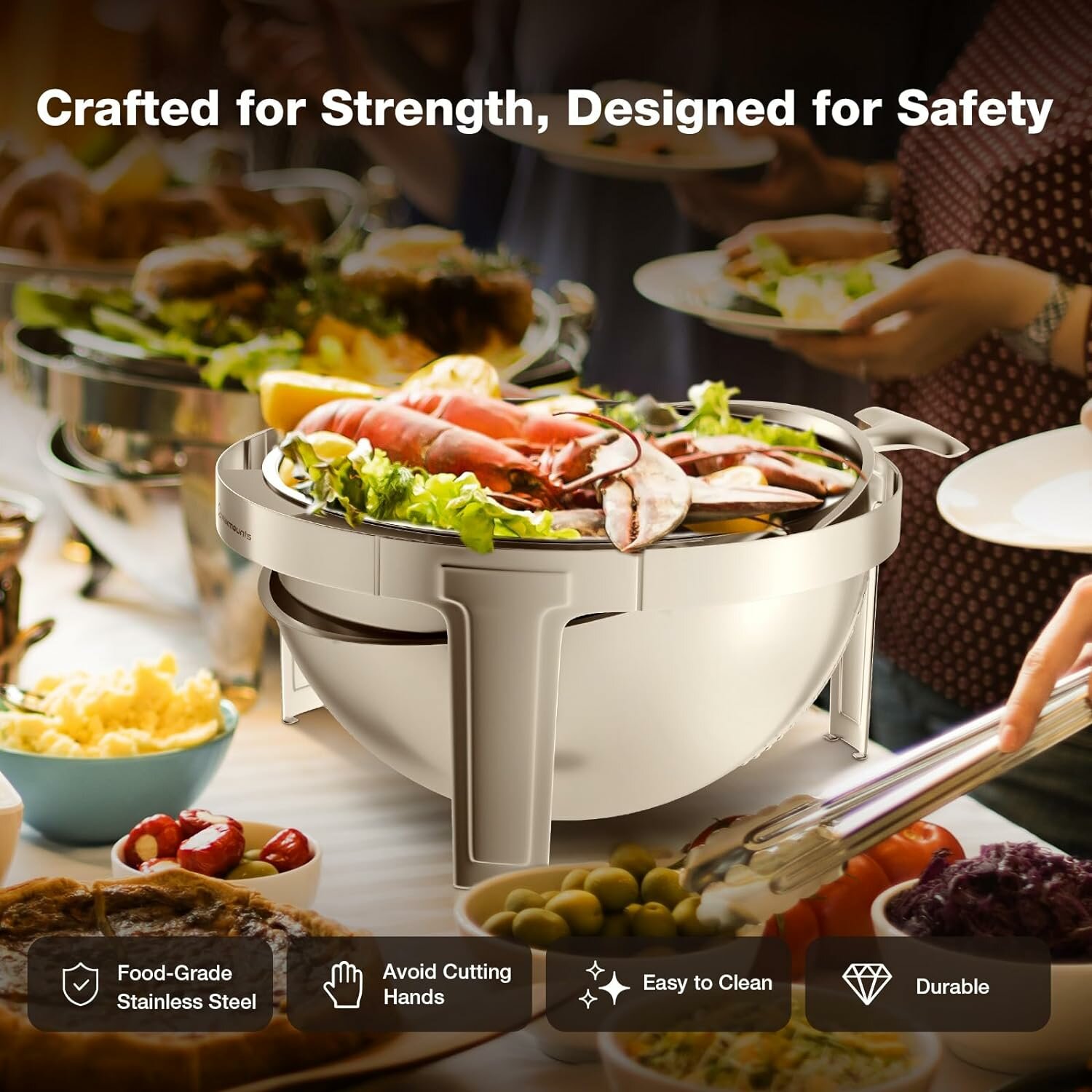 - The transparent glass lid design allows you to observe the food within without the necessity to roll up the lid, thereby improving overall presentation and attractiveness while ensuring the food remains uncontaminated - The 0-180° adjustable roll top lid with a T-shaped handle for easy opening and closing, improves the convenience for guests serving themselves and reduces the risk of accidental burns from coming into contact with hot food