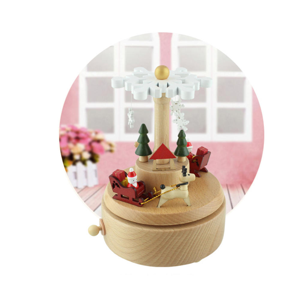 • Wooden Christmas Music Box Crafts Christmas Tree Snowflake Gifts Cartoon Desktop Decoration 16cm*11cm COD